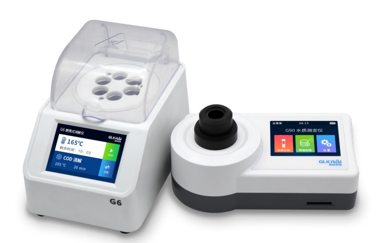 测定仪和配备的消解仪为均为触屏操作,产品内置水质分析、数据查询、数据导出、引导检测模式等应用程序,可测定COD、氨氮、总磷、总氮四种项目(项目可自由组合选配)。